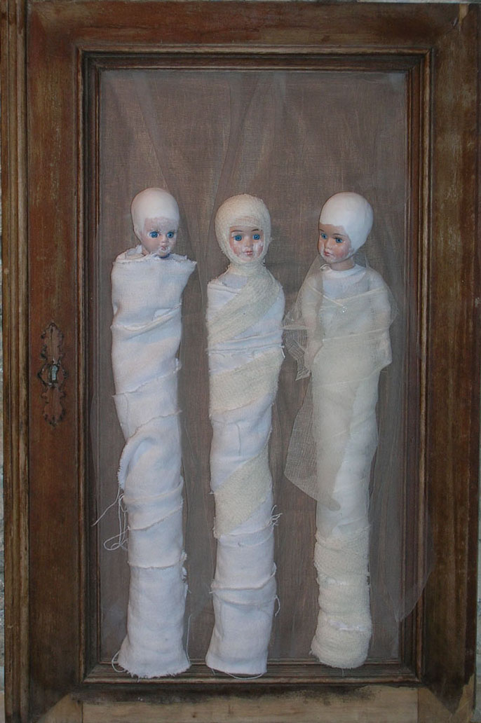 Poupées, tissus & cadre ancien - 54 x 83 cm - 2005