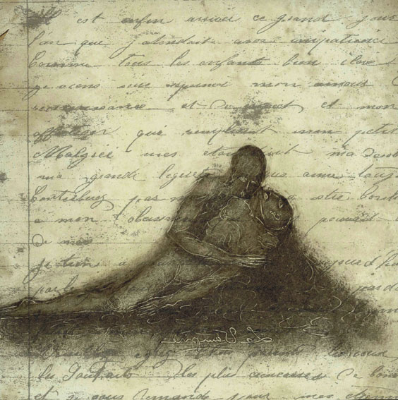 Monotype marouflé sur bois-18x20cm dans cadre boîte 32x32cm-2007 (détail)